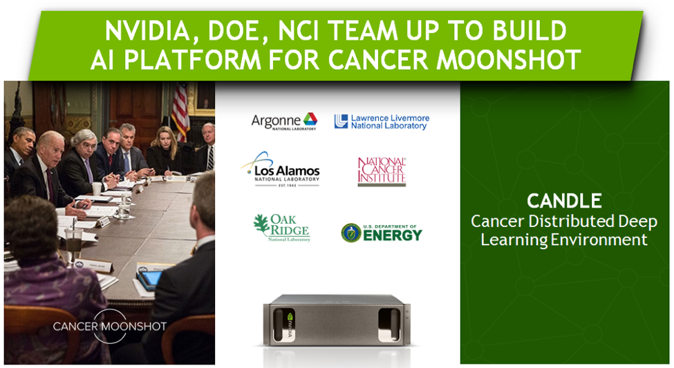 NVIDIA has teamed up with the National Cancer Institute, the U.S. Department of Energy, and national research laboratories to build a common discovery platform for cancer called CANDLE, based on today’s state of the art technology artificial intelligence (AI).