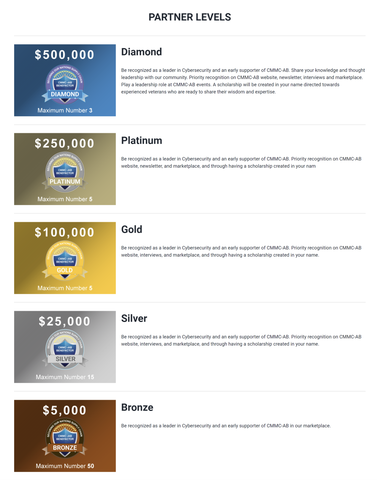 Details of the program were briefly posted to the Cybersecurity Maturity Model Certification Accreditation Body’s (CMMC-AB) website, charging companies up to $500,000 to be promoted and marketed as a “recognized leader in cybersecurity and an early supporter of CMMC-AB.” It has since been taken down, “pending revision.”