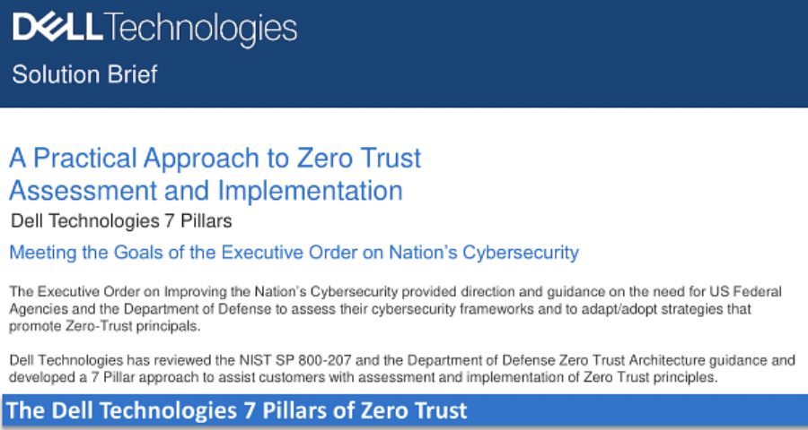 To help federal agencies, Dell Technologies has released a new solution brief designed to assist IT leaders with their assessment and implementation of zero-trust practices.