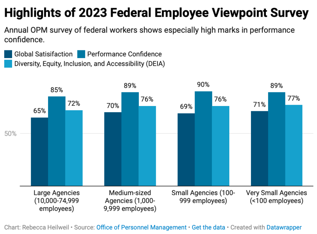 The Office of Personnel Management has released the results of the 2023 Federal Employee Viewpoint Survey (FEVS). While the survey demonstrated strong marks on some key metrics — job satisfaction is nearly 70 percent — participation in the survey remains relatively low.