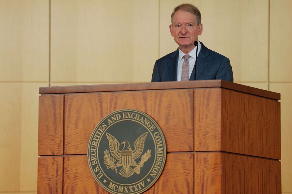 Securities and Exchange Commission Chairman Paul Atkins gives opening remarks at a roundtable with the SEC's Crypto Task Force at agency headquarters on April 25, 2025 in Washington, D.C. (Photo by Anna Moneymaker/Getty Images)