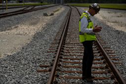 A view of the tracks near Basecamp, Brightline’s train maintenance facility, on June 5, 2023 in Orlando, Fla. (Photo by Thomas Simonetti for The Washington Post via Getty Images)