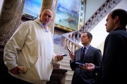 U.S. Sen. John Fetterman, D-Pa., speaks to reporters outside the Senate Chamber during votes on Nov. 10, 2025 on Capitol Hill in Washington, DC. (Photo by Andrew Harnik/Getty Images)