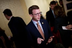 Rep. Dusty Johnson, R-S.D., speaks to a reporter following a House Republican caucus meeting at the U.S. Capitol on Feb. 25, 2025 in Washington, D.C. (Photo by Andrew Harnik/Getty Images)