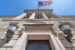 A sign marks the entrance to the Department of Commerce headquarters building on April 30, 2025, in Washington, D.C. (Photo by J. David Ake/Getty Images)