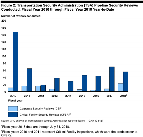 Corporate security reviews and critical facility security reviews of the 100 most critical pipeline systems remain at the owner’s discretion. By November, TSA plans to begin tracking security review recommendations from the past five years.