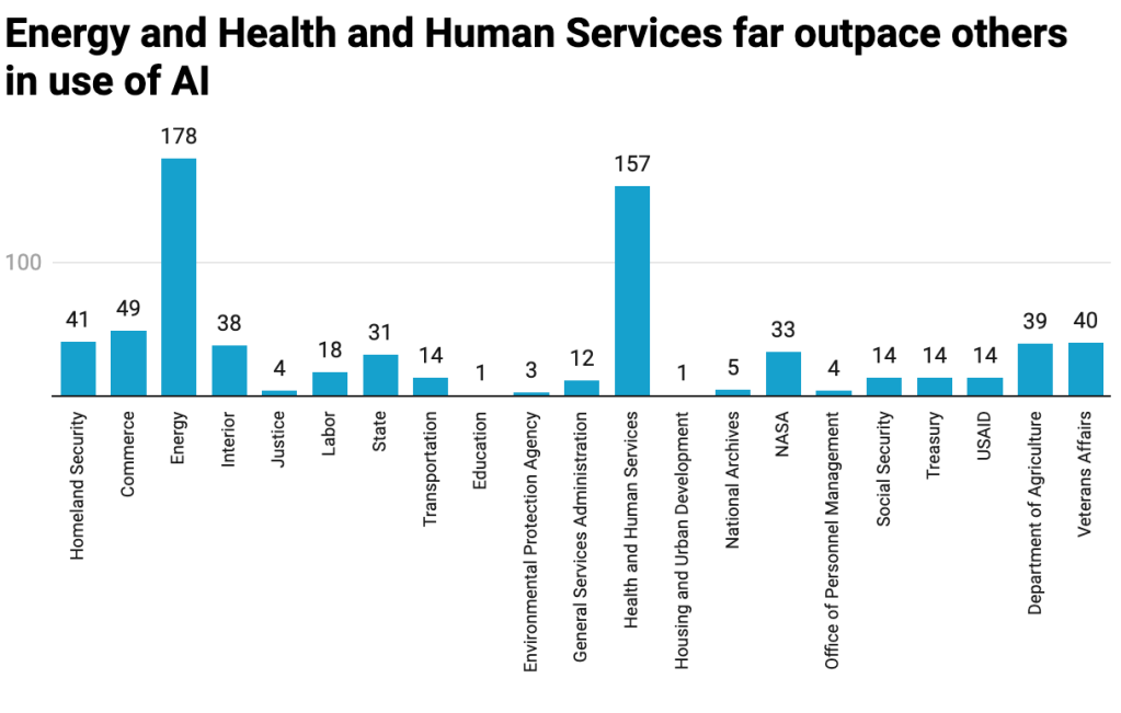 The new database shows the government is using an extensive array of artificial intelligence tools, even as it gears up to further regulate and invest in the technology. The database also demonstrates that some agencies have done more to deploy and document their use of AI, particularly the Department of Energy and Health and Human Services, which have each disclosed more than 150 use cases.