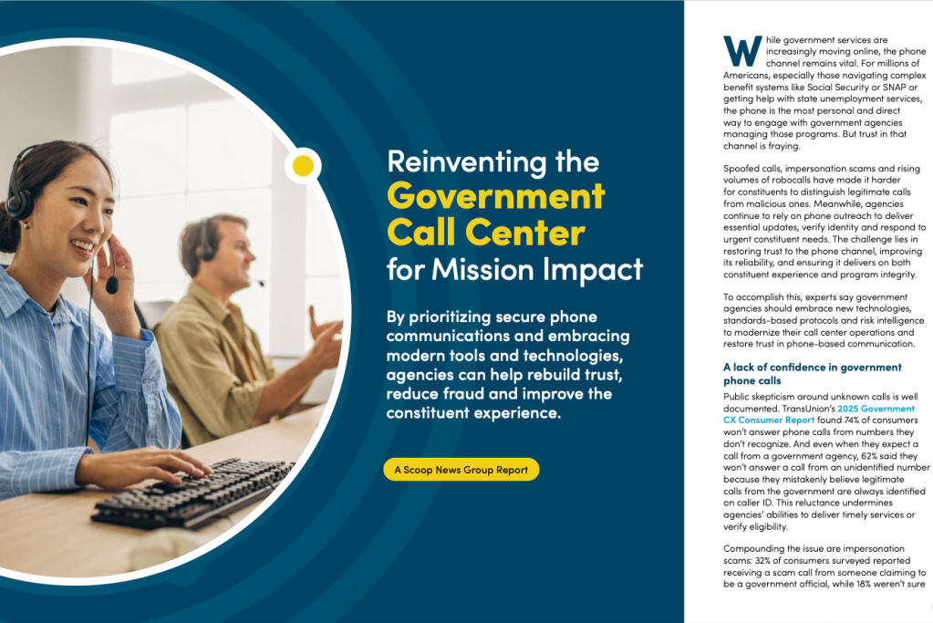 As digital self-service tools expand across government programs, a new report produced by Scoop News Group for TransUnion highlights a critical yet often overlooked fact: For millions of Americans, the telephone remains the most direct and personal way to interact with government agencies. But amid rising impersonation scams, spoofed numbers and robocalls, trust in this channel is rapidly eroding. That hesitancy hampers critical functions like identity verification and benefits outreach while opening the door to more sophisticated fraud.